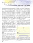 Basic Science of New Spinal Cord Stimulation Waveforms HIGH-FREQUENCY SPINAL CORD STIMULATION In principle, high-frequency (HF) sinusoidal stimulation ap plied to a nerve or an axon provides a local conduction block (e.g., Kilgore and Bhadra 58,59 ). In contrast to HF current appli cation to a peripheral nerve, HF SCS applied to the dorsal spi nal cord of lightly anesthetized rats with the pulse width (PW) and the low amplitudes used clinically induced no block of transmission in the dorsal columns (DCs) nor any activation. 60 Clinical HF SCS is applied via bipolar stimulation at a pulse repetition rate of 10 kHz and a short PW of about 30 micro seconds at an amplitude that is below perceptual threshold (see Fig. 96.1). The “working hypotheses” for HF SCS so far have been (1) a transmission block or (2) activation of some pathways in the spinal cord. However, a recent computer simulation study 61 has demonstrated that both these hypotheses require high stimulation amplitudes that are at the upper end or outside of the ranges used clinically in HF SCS. A third hypothesis was based on observations from studies of the auditory system in cats and on some few patients with cochlear implants. HF stimulation seemed to be able to induce a desynchronization of neural signals from groups of neurons firing in synchrony. This interesting hypothesis has, to the best of our knowledge, never been studied in nociception (review Linderoth and Foreman 62 ). Furthermore, a study by Song et al, 60 has shown that trans mission in the DCs is not affected because there is neither fiber recruitment nor block with HF SCS. Another recent study 63 where recordings from rats with nerve injury were performed with tungsten electrodes on single DC fibers provided data sup porting the view that no blockade of the DCs is obtained with HF SCS at clinically relevant amplitudes. It seems that there is a therapeutic effect of HF SCS, but so far, it has not been found superior to that of traditional SCS in our FIGURE 96.2 Schematic illustration of mechanisms and neurotransmitters possibly involved in the effects of spinal cord stimulation (SCS) in neuro- pathic pain. SCS activation of dorsal column collaterals secondarily induces release of g -aminobutyric acid (GABA) from dorsal horn (DH) interneurons, activating mainly GABA-B receptors and decreasing the release of excit- atory amino acids from hyperexcited second-order DH wide dynamic range (WDR) neurons. SCS also causes cholinergic neurons to activate M4 and M2 muscarinic type receptors (Ach). Several other transmitters, adenosine, and hitherto unknown substances are also likely involved. Furthermore, the orthodromic SCS-induced activity in the dorsal columns might—via neuro- nal circuitry in the brainstem (or even more rostrally)—induce descending inhibition via serotonergic (5-HT) and noradrenergic (NE) pathways in the dorsolateral funiculus (DLF), which might contribute to inhibitory influences in the DHs. c, c fibers accompanying A d and A b fibers; DC, dorsal columns; STT, spinothalamic tract; X, unknown transmitters probably modulated by spinal stimulation.