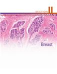 both luminal epithelial cells and myoepithelial cells (34). The relationship of these putative “progenitor” cells to mam- mary stem cells is an unresolved issue (34,35). However, it is clear that the cells with the characteristic features of stem cells (i.e., self-renewal and the ability to differentiate down different cell lineages to form all of the cell types found in the mature tissue) do exist in the breast. Mammary stem cells appear to be important in both breast development (36) and mammary carcinogenesis (35,37,38). Phenotypic fea- tures that have been associated with the mammary stem cell population include lack of expression of ER and progester- one receptor (PR), high expression of CD44, low or absent expression of CD24 and expression of aldehyde dehydroge- nase 1 (ALDH1) (38,39), although the most accurate com- bination of markers to reliably identify mammary stem cells is unresolved at this time. A basal lamina consisting of type IV collagen and laminin surrounds the mammary ducts, ductules, and acini (21,40). This basal lamina is present outside of the myoepithelial FIGURE 3.8 Extralobular duct ( A ) and lobule ( B ) immunostained for p63. The myoepithelial cells show strong nuclear reactivity, whereas the epi- thelial cell nuclei are negative. C: Double immunostain for smooth muscle actin (red cytoplasmic staining) and p63 (brown nuclear staining) high- light the myoepithelial cells around this mammary duct. Note the lack of staining of the epithelial cells for both p63 and smooth muscle actin.